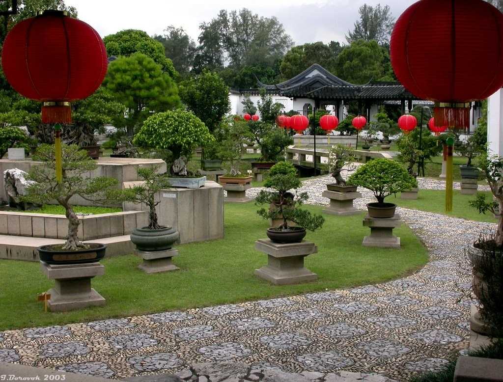 При выборе деревьев отдают предпочтение хвойным породам, символизирующим здоровье и долголетие (можжевельник, пихта, сосна). Непременным атрибутом любого китайского сада должно быть карликовое дерево бонсай.