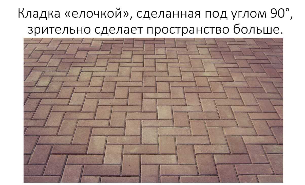 - Мощение «елочка», сделанное под углом 45°, визуально сжимает пространство.