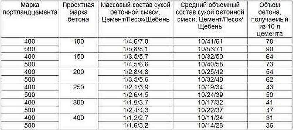 Соотношение составляющих бетонной смеси напрямую зависит от марки цемента. В том случае, если вы применяете для приготовления бетона цемент М500, то к нему добавляют 4,9 части щебня и 3,2 части песка, а для цемента М400 на каждую его часть необходимо добавлять 4,2 части щебня и 2,5 части песка. Такое соотношение позволит вам получить бетон марки М200. Более простым способом будет заказ уже готовой бетонной смеси от производителя. Это рекомендуется делать при необходимости заливки более 3 м3 бетона.