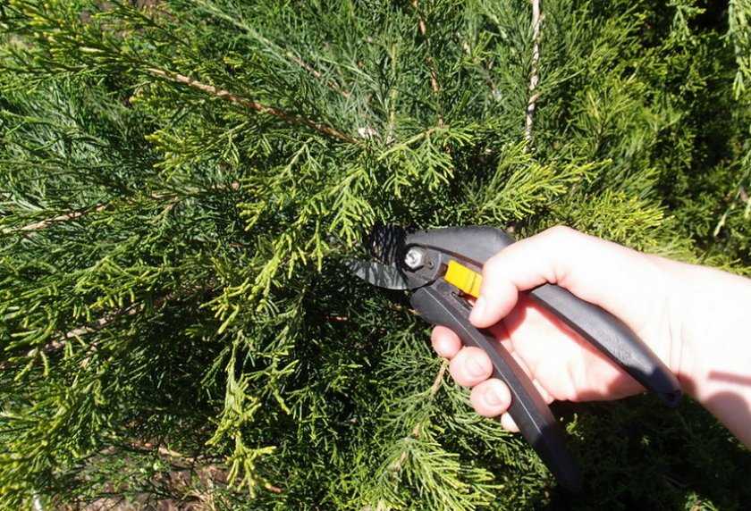 Обычно туи хорошо переносят обрезку и позитивно на неё реагируют: крона становится более пышной и густой. Но Филиформис практически не нуждается в формирующей обрезке — это уже зависит от желания садовода. Обязательной является санитарная обрезка. Ранней весной, до начала движения сока нужно удалить все сухие и повреждённые ветви. От этой процедуры зависит здоровье и красота всего куста.