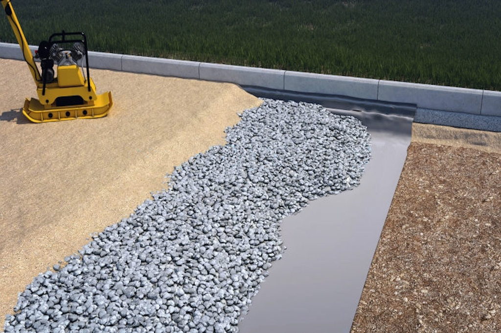 Для ее формирования желательно использовать мягкий щебень известняка. Затем укладывается слой геотекстиля, не позволяющий перемешаться отдельным слоям (при необходимости утепления основания под тканью располагается экструдированный пенополистирол).