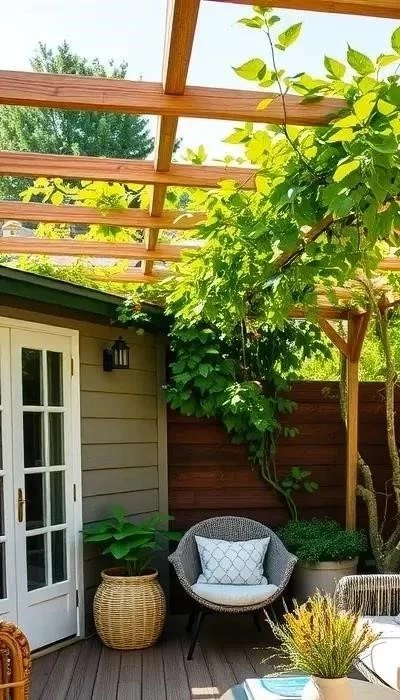 Дополните пространство плетеными корзинами, глиняными горшками с цветами, самодельными светильниками. Не бойтесь использовать яркие, насыщенные цвета в текстиле – подушках, пледах, скатертях. Пергола, увитая диким виноградом, станет прекрасным дополнением к террасе в стиле рустик.