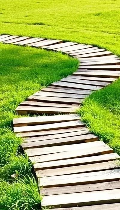 Дорожки из поддонов – практичное и стильное решение для сада. Разберите поддон на отдельные доски и выложите ими дорожку, закрепив их на песчано-гравийной подушке. Плюсы: бюджетность, простота укладки, естественный вид. Минус: необходимость регулярной обработки антисептиком для защиты от гниения.