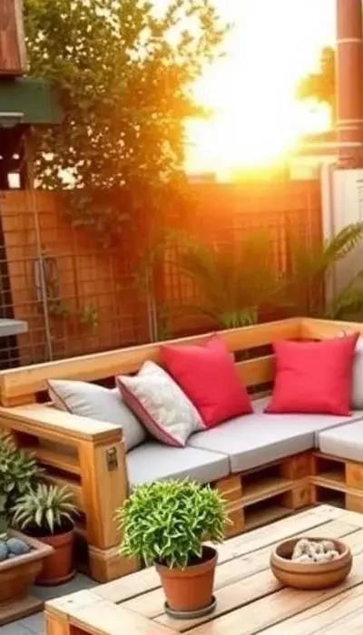 Садовая мебель из поддонов, например, кресла или диваны, создаст комфортную зону отдыха. Соберите поддоны в нужную конфигурацию, добавьте подушки и пледы. Плюсы: бюджетность, простота изготовления, возможность создания мебели по индивидуальным размерам. Минус: не самый долговечный вариант, требует регулярного ухода.