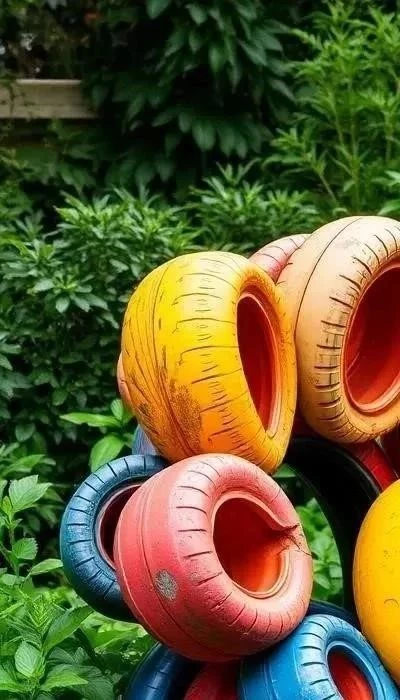 1. Клумбы из старых шин: Покрасьте шины в яркие цвета и сложите их друг на друга, создавая многоуровневые клумбы. Это простой и эффектный способ утилизировать старые шины и добавить красок в ваш сад.