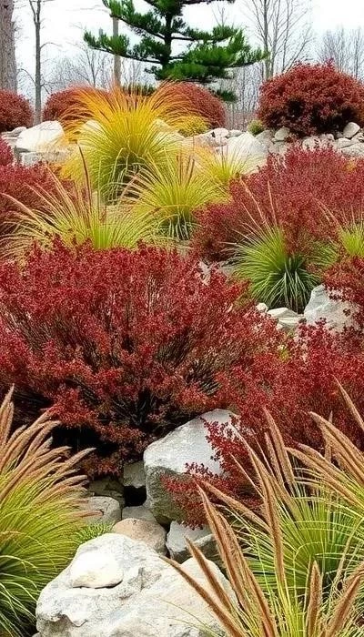 Рокарий с лиственными кустарниками – оригинальное решение для создания альпийского сада. Используйте низкорослые лиственные кустарники, такие как барбарисы или спиреи, для украшения рокария. Добавьте камни и другие декоративные элементы.