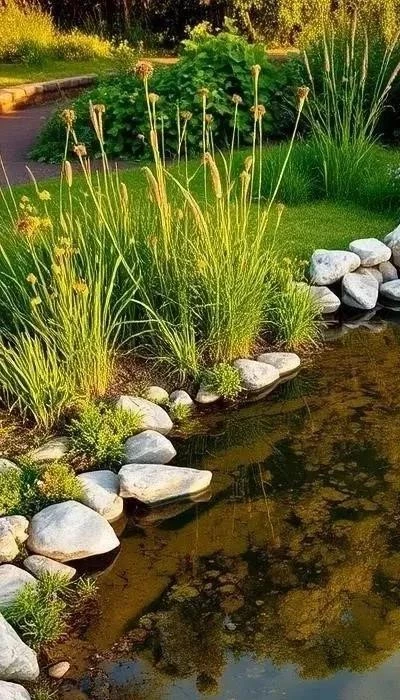 Для создания более реалистичного эффекта можно использовать почвопокровные растения, которые растут по берегам пруда, имитируя естественную растительность. Важно подобрать растения, которые соответствуют климатическим условиям вашего региона. Не забывайте про декор пруда.